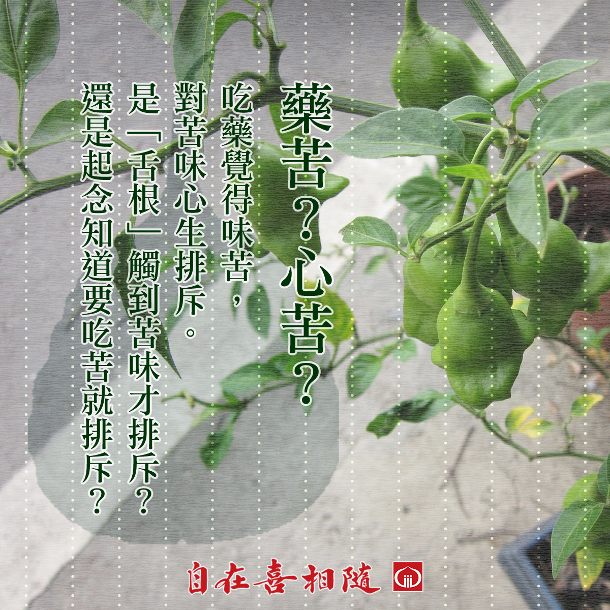 藥苦?心苦? 發表於 2025 年 10 月 19 日 由 香光 吃藥覺得味苦,對苦味心生排斥。 是「舌根」觸到苦味才排斥? 還是起念知道要吃苦就排斥? 自在喜相隨 線上閱讀:https://gaya.org.tw/easy
