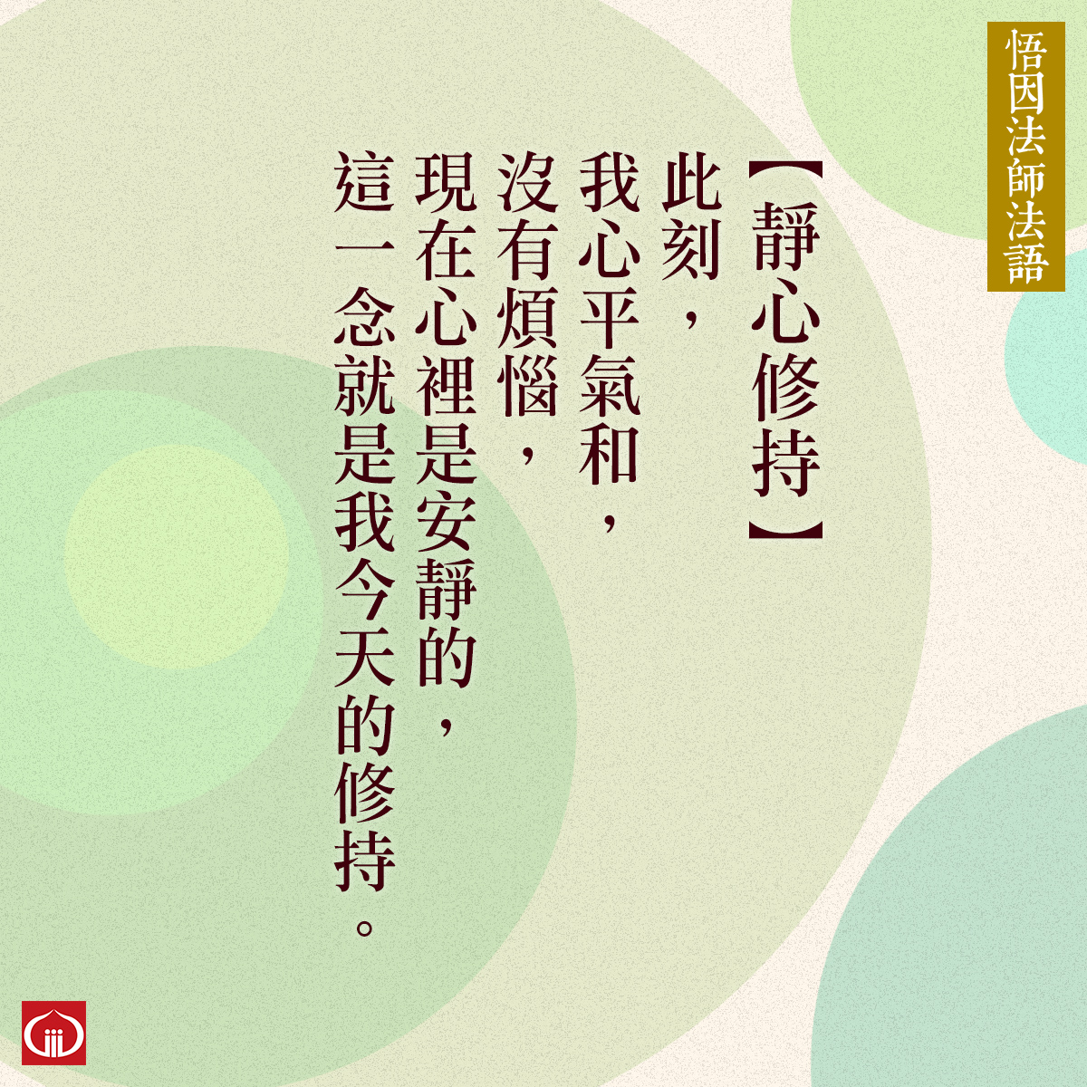 此刻,我心平氣和,沒有煩惱,現在心裡是安靜的,這一念就是我今天的修持。