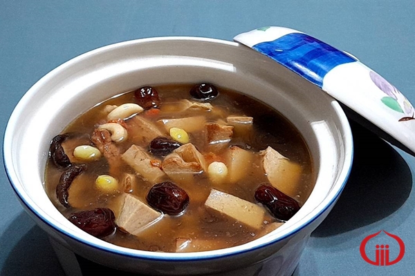 【精緻蔬食diy】益身補氣湯 發表於 2025 年 10 月 29 日 由 香光 食譜、拍攝:道寬居士 【材料】 素肉 1份 香菇 5朵 當歸 1錢 紅棗 10粒 白果 12粒 腰果 10粒 枸杞 1湯匙 生芪 2錢 滾水 5杯 鹽巴 半茶匙 香菇粉 半茶匙 冰糖 適量 【作法】 將素肉切塊後,以熱油炸至稍硬備用。 香菇泡軟後擠乾水並去蒂,同樣用熱油炸至焦黃。 備一盅放入炸素肉、香菇以及各種中藥材,倒入滾水,鹽巴、香菇粉、冰糖調味。上蓋後將盅入鍋蒸四十分鍾即可。 ※ 可選用調味素肉味道更佳,素肉先炸硬是為了燉煮時不易軟爛保有彈性。 ※ 非素食者,可加一湯匙米酒的提升風味。