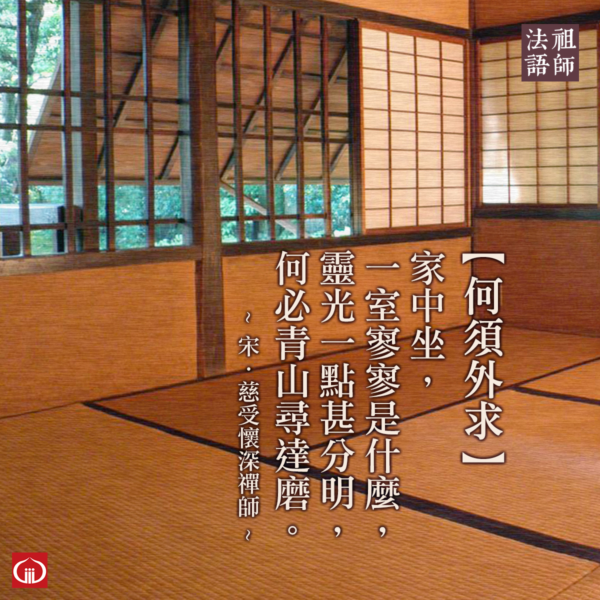 家中坐,一室寥寥是什麼,靈光一點甚分明,何必青山尋達磨。