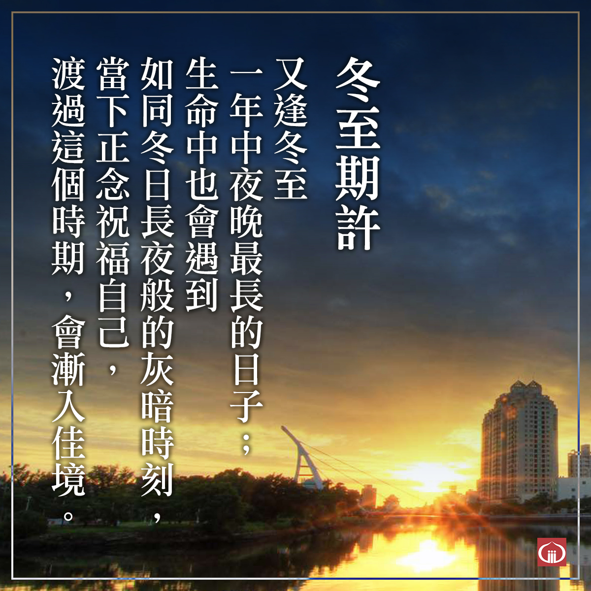 又逢冬至⸺一年中夜晚最長的日子;生命中也會遇到如同冬日長夜般的灰暗時刻,當下正念祝福自己,渡過這個時期,會漸入佳境。