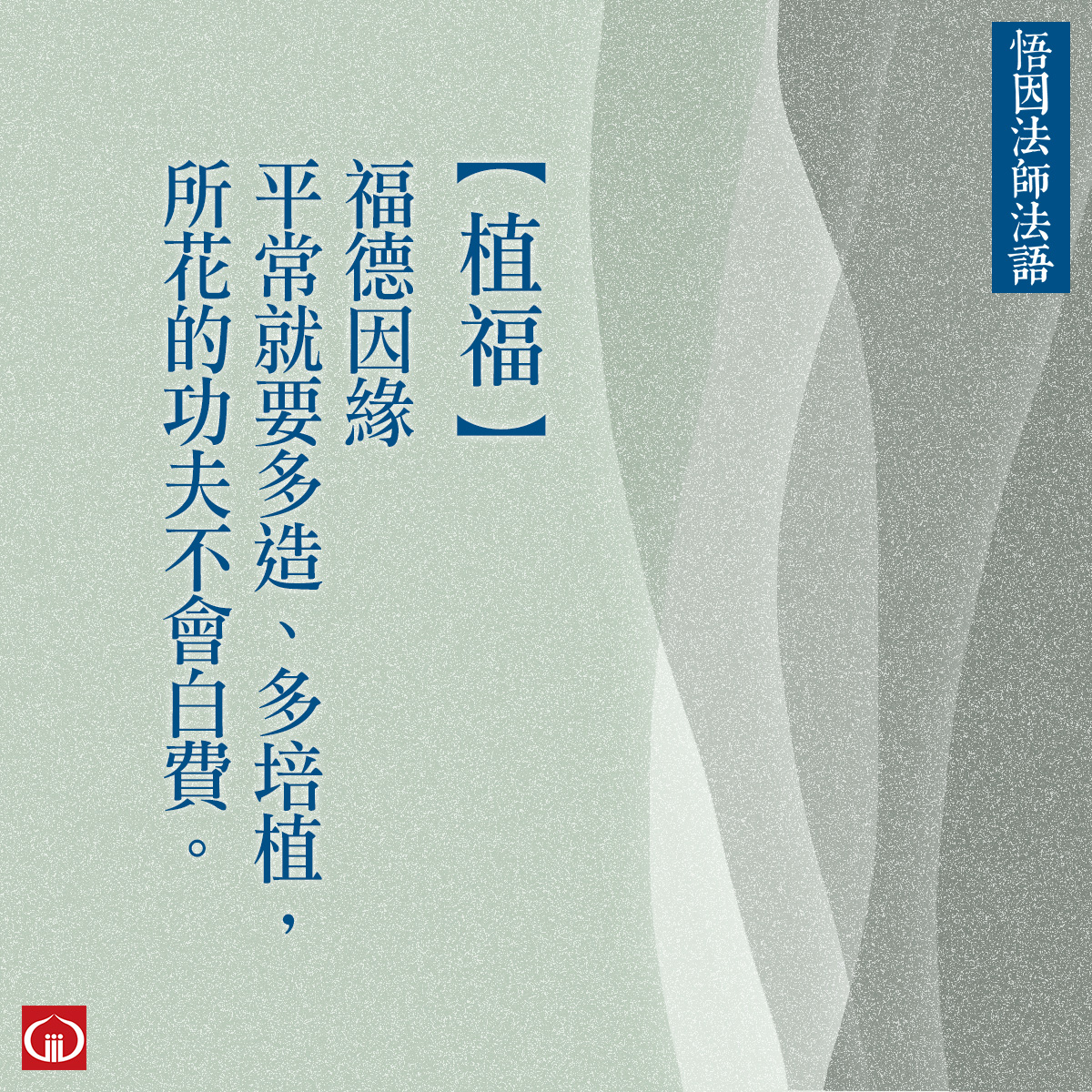 福德因緣平常就要多造、多培植,所花的功夫不會白費。