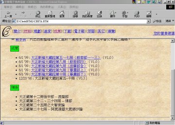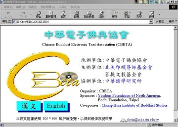 ¡@¡@¤¤µØ¹q¤l¦ò¨å¨ó·|¡]Chinese Buddhism Electronic Text Association¡A²ºÙCBETA¡^¬O»E¶°¤@¸s±M¾ªº¤H¤~¡A¹B¥Î²{¥N¤Æªº¹q¸£¡B³q°T¡B¸ê°T¬ì§Þªº¨ó§U¡A±N¦UÃþ«¬ªº¦ò¾Ç¤åÄm¸ê®Æ¥[¥H¼Æ¦ì¤Æ¡A¨Ã³z¹L¦³®Äªº¸ê°TºÞ²z¡A´£¨Ñ§Y®É¡B§Y¦aªºªA°È¡A¥¿½T¦Ó§Ö³t¦³®Äªºº¡¨¬¨Ï¥ÎªÌ¹ï¦ò¾Ç¸ê°Tªº»Ý¨D©Ò¦¨¥ßªº¹ÎÅé¡C¥Ø«e«hP¤O©ó¦b¤T¦Ü¤¦~¤º§¹¦¨¤j¥¿ÂòĤ@¥U¦Ü¤¤Q¤¥U¤Î²Ä¤K¤Q¤¥Uªº¹q¤l¦ò¨å¡A§K¶O´£¨Ñ¤j²³¨Ï¥Î¡C