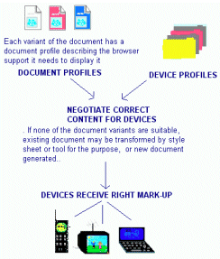 ¡]¤@¡^·s¤@¥Nºô¶¥Xª©»y¨¥ XHTML¡@¡@µL½×¦p¦ó¡AHTML¾ú¸g¦h¦¸ªººt¶i¡A¤w¸g¾Ö¦³¤ä´©¼sªx Web À³¥Îªº¯à¤O¡A¦]¦¹¥Ø«e¤´¬Oºô¸ô¤W³Ì³q¥ÎªºWeb¥Xª©»y¨¥¡CHTML ¬O SGML ªº¤@ÓÀ³¥Î¡A¨ä³Ì·s³W½d¬O W3C ©ó 1999 ¦~ 12 ¤ë©Òµo§GªºHTML 4.01«ØÄ³¼Ð·Ç¡]µù 52¡^¡A¸Ó¼Ð·Ç×¥¿¤F1998¦~4¤ëµo§GªºHTML 4.0³W½d¤¤ªº¬Y¨ÇBug¡]µù 53¡^¡C¡@¡@¦bXML³W½d¥¿¦¡¦¨¬° W3C «ØÄ³¼Ð·Ç¤§«á¡AHTML¤u§@¤p²Õ«KÀÀ©w±N HTML ±q즳ªº SGML ®Ø¬[¤¤²¾´Ó¦Ü XML ®Ø¬[¤Wªºpµe¡A¶}©lµÛ¤â±N HTML 4 ¥H XML »yªk«·s©w¸q¡A¨Ã©ó2000¦~1¤ë¹{§G¤F°ò©óXML¤§·s¤@¥Nºô¶¥Xª©»y¨¥XHTML 1.0¡]Extensible HyperText Markup Language¡A¥iÂX®iªº¶W¤å¥ó¼Ðª`»y¨¥¡^¡]µù 54¡^¡C XHTML ¤£¦ý¨ã³Æ¤F HTML ±j¤jªº¶W´CÅéºô¶ªí²{¯à¤O¡A³Ì«nªº¬O¥¦¾Ö¦³XMLªº¾ã¦X©Ê¤ÎÂX¥R©Ê¡C XHTML ¤ä´© XML ªº Namespace ¡A¨Ï±o XHTML ¥iµ²¦X²³¦h XML À³¥Î»y¨¥¡A¨Ò¦p¡GSMIL¡BSVG¡BMathML......µ¥¡A®i¥X¹q¤l¤å¥óªº¦h¼Ë¤Æ·»ª¡C ¡@¡@¦¹¥~¡AXHTML Ä~©Ó¤F XML ªºÂX¥R©Ê¡A¨Ã±N¼ÐÅÒ¶°¨Ì¥\¯à¤Î¥Î³~¥[¥H¼Ò²Õ¤Æ¡]Modularization¡^¡Cºô¶§@ªÌ¥i®Ú¾Ú¤£¦Pªº¨Ï¥ÎªÌ²×ºÝ³]³Æ©Î¤£¦PªºÀ³¥Î»Ý¨D¡A¿ï¥Î¤£¦P¼Ò²Õªº¼ÐÅÒ¤l¶°¡FY¬O²{¦³ªº¼ÐÅÒ¶°¤£¼Å¨Ï¥Î¡A¼Ò²Õ¤Æ¤]´£¨Ñ¤F¤@ÓÂX¥R¼ÐÅÒ¥~¶°ªº¥¿³W³~®|¡C¨Ì¾Ú W3C ¥Ø«eªº¤u§@¯ó®×¡AXHTML¼ÐÅÒ¶°¨Ì¨ä¥Î³~¤jP¤À¬°¥H¤U¤Q¾lÓ¤£¦P¼Ò²Õ¡G¦@¦P¦r¤¸¼Ò²Õ¡]Common Characteristics of Modules¡^¡B°ò¥»¼Ò²Õ¡]Basic Modules¡^¡BApplet¼Ò²Õ¡]Applet Module¡^¡B¤å¦rÂX¥R¼Ò²Õ¡]Text Extension Modules¡^¡Bªí³æ¼Ò²Õ¡]Forms Modules¡^¡Bªí®æ¼Ò²Õ¡]Table Modules¡^¡B¼v¹³¼Ò²Õ¡]Image Module¡^¡B«È¤áºÝ¼v¹³¬M®g¼Ò²Õ¡]Client-side Image Map Module¡^¡B¦øªAºÝ¼v¹³¬M®g¼Ò²Õ¡]Server-side Image Map Module¡^¡Bª«¥ó¼Ò²Õ¡]Object Module¡^¡B®Ø¬[¡]Frames Module¡^¡BIframe¼Ò²Õ¡B¨Æ¥ó¼Ò²Õ¡]Intrinsic Events¡^¡B¸àÄÀ¸ê°T¼Ò²Õ¡]Metainformation Module¡^¡B´yz»y¨¥¼Ò²Õ¡]Scripting Module¡^¡B¼Ë¦¡ªí¼Ò²Õ¡]Stylesheet Module¡^¡B³sµ²¼Ò²Õ¡]Link Module¡^¡B°ò©³¼Ò²Õ¡]Base Module¡^©MLegacy ¼Ò²Õ¡]Legacy Module¡^µ¥¡]µù 55¡^¡C ¡@¡@°ò©ó¥¼¨Ó©Êªº¦Ò¶q¡A¤H̰£¤F®à¤W«¬¹q¸£¡]Desk-Top Computers¡^¤§¥~¡A±NÂǥѧó©ö©óÄâ±aªº¦æ°Ê³]³Æ¡]Mobile Devices¡^¡A¦pÓ¤H¼Æ¦ì§U²z¾¹¡]Personal Digital Assistants¡APDA¡^¡B´x¤W«¬¹q¸£¡]Palm-Top Computers¡^¡B¨®¥Î¹q¸£¡]In-Car Computers¡^¡B¦æ°Ê¹q¸Ü¡]Cellular Phones¡^¡B©I¥s¾¹¡]Pagers¡^......µ¥¡A¨Ó¦s¨úºô¸ô¸ê°T¡BÂsÄýºô¶¤º®e¡C¦¹¤@¥Ø¼Ð¥²¶·É§U³]³Æ´yzÀÉ¡]Device Profile¡^©M¤å¥ó´yzÀÉ¡]Document Profile¡^¨Ó¹F¦¨¡C³]³Æ´yzÀɬö¿ýµÛ¬Y¤@¤wª¾³]³Æ¨s³º¤ä´©¤Fþ¨ÇXHTML¼Ò²Õ¡F¦Ó¤å¥ó´yzÀÉ«h°O¿ýµÛ¬Y¤@¥÷¯S©w¤å¥ón¯à¥¿±`§e²{¦b¬YÓ¤wª¾³]³Æ®É¡A©Ò»ÝnªºXHTML¤å¥ó©M¼Ë¦¡ªí¬°¦ó¡A·íµM¡A³o¨ä¤¤¤´¶·¬Y¨ÇÂà´«µ{¦¡ªº»²§U¡A¨ä¹B§@¹Lµ{¦p¹Ï 13©Ò¥Ü¡C