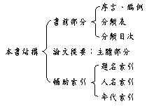 ¡@¡@¡u§Ç¨¥¡v«Y¹ï¥»¡m·J½s¡n½s¿è½t°_¡B¸g¹Lµ¥§@²nªº¤¶²Ð¡F¡u½s¨Ò¡vÂk¯Ç¥X¥»¡m·J½s¡n½s¿èì«h¡A¬O¨Ï¥Î¥»¡m·J½s¡nªº«ü¾É¤å¦r¡C¡u¤ÀÃþªí¡v¬O¥»¡m·J½s¡n¤ÀÃþ¼Ð¤Þªº¨Ì¾Ú¡F¡u¤ÀÃþ¥Ø¦¸¡v¬OÀ˾\¥Ø¿ý¥¿¤åªº¤jºõ¡A¤]¬O¥»¡m·J½s¡n¤º®eªº¿@ÁY¡C¥Ø¿ý¥¿¤å«Y¥Ñ´Ú¥Øºc¦¨¡A¨ä¤º®e¥Dn¥]¬A°ò¥»µÛ¿ý©M¤º®e´£n¨â³¡¤À¡C»²§U¯Á¤Þ¬O¬°¤F¸É¥R¤ÀÃþ½s±Æ¤§¯Ê¥¢¦Ó½s»s¡A½s¦³ÃD¦W¯Á¤Þ¡B¤H¦W¯Á¤Þ¡B¦~¥N¯Á¤Þ¤TºØ¡C¨ä¤¤¡A¤H¦W¯Á¤Þ¥]¬A½×¤åµÛªÌ¡B«ü¾É±Ð±Â¡B³Q¬ã¨sªÌ¤TªÌ¡C»²§U¯Á¤Þ±q½×¤åÃD¦W¡B¤H¦Wªºµ§µe¶¶§Ç©M½×¤å¥Xª©¦~¥N¨âºØ³~®|¥HÀ˾\¥Ø¿ý¥¿¤å¡C¯÷¬°©úÁA°_¨£¡A±N¥»¡m·J½s¡n¤§§»Æ[µ²ºc»sªí¸Ñ»¡¦p¤U¡G¡]µù6¡^