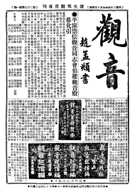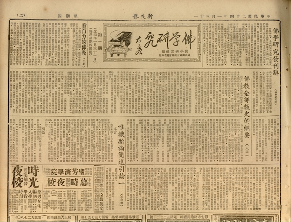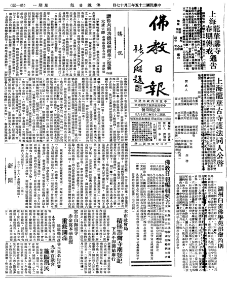 民國佛教報紙出版及其內容黃夏年 中國社會科學院世界宗教研究所【摘要】民國是中國社會的一個重要轉型的時期,佛教界人士也在轉型期與社會的結合更加緊密,其最重要的標誌就是努力興辦佛教文化事業,除了辦刊之外,佛教報紙的出版也是一個最重要的活動。本文梳理了民國報紙出版的歷史背景與出版情況,並且分析了每份報紙的特點,認為這些報紙是中國佛教界的有識之士提倡佛教改革,在時局動盪時代發揚慈悲助世、精誠愛國的自覺精神的反映。特別是這批資料保留了大量的學術文獻和老照片,無疑會給今天的使用者提供更為直觀的研究便利。因之不可小看,值得重視。 關鍵詞:民國佛教報刊;太虛;佛教文化;近代佛教;佛教復興 報紙是紙質媒體的一種,在所有的媒體中,除電視與網路之外,它是最有影響的宣傳工具了。這是因為它的出版週期短、信息量大、發行面廣,因此一直受到各界人士的重視,並且成為現代人們生活中不可缺少的精神食糧。 近現代中國社會出版報紙,已經有近二百年的歷史,但是最早在中國辦報的是外國人。據專家研究,從1815年到十九世紀末,外國人在中國辦了近200種中外文報刊,占我國報刊總數的百分之八十以上。其中《蜜蜂華報》是中國境內出版的第一份外文報紙,《廣州紀錄報》是中國境內出版的第一份英文報紙。在這些報刊中,具有影響力的報紙不少,例如上海的《申報》、《萬國公報》等等。在積極辦報的人或團體中,有不少是西方教會背景,有的甚至就是西方派來的傳教士。作為輿論的喉舌,他們代表了某一教會的意願,是教會用來宣教和吸引信徒的重要手段之一。 一、民國佛教報紙產生背景 作為中國傳統文化的重要組成部分之一的中國佛教界,這時由於它的衰落,在文化事業上一直處於被動的地位。特別是僧伽只知抓住祖產,不知革新,對文化根本不重視,據說當時有的寺院連一個會寫字的人都沒有,清政府和民國政府以興學為藉口,要將寺院改變成學校,宗風墜落,佛法旦夕之亡,已成趨勢。而當時整個社會,西學東漸,新思潮湧起,對佛教是一個很大的衝擊,促使一些人在考慮如何振興佛教,讓佛教能夠與時俱進,普及社會,送達人間。如當時就有人認為:「佛化普及,首在培養人才,人才崛興,尤在提倡教育。非人才無以宏佛化,非教育無以造人才。此教育之所宜亟亟提倡焉。夫教育者,知識之所由啟,學術之所由明。知識見啟,學術既明,而何患人才之不崛興,佛化之不普及者乎?根茂實遂,膏沃光曄,此理之固然而無或爽者也。教育猶根也,佛化猶實也,教育猶膏,佛化猶光也,根不養而竢其實,膏不加而希其光,教育不提倡,而望佛化之普及,吾有以知其必不能也。語曰:工欲善其事,必先利其器。器利則事未有不善者也。然處今日而言佛化之普及,非提倡教育,以培養人才必不可。而人才譬之器,佛化譬之事,蓋人才既出,而佛化斷未有不昌明者也,不然佛化普及之說,由來久矣,而卒未能實現者,豈佛化之終難普及歟,實因人才之缺乏,有以致之人才之缺乏,實因教育之衰微,有以致之。世人徒知佛化之不普及,而不知其係於人才之缺乏,徒知人才之缺乏,而不知其係於教育之衰微。噫,知識之所以不啟,學術之所以不明,職是故也。長此以往,吾恐洋洋佛化,不特不能普及而反日就衰頹,然則,教育之於佛化關係誠重,而提倡之不容一日或緩也明矣。惟是教育之一端,關係既重,提倡之責其誰任之。論者莫不曰:在先覺之長老,與有力之護法,吾以為彼之所言不為無見。然知識之啟,學術之明,固人人之所有事也,豈其於教育而可漠然視之。且教育則為佛化之本,凡為佛子於宏揚佛化,皆有應盡之責,即於提倡教育,亦皆有接盡之責,各竭其財力心思以為之可也,而必賴之於長老護法為也。顧亭林云:天下興亡匹夫有責。吾於佛化之興衰亦云。」(註1)因此在直追社會之際,佛教界的任務繁重,復興佛教,首先是要復興佛教文化,只有當佛教文化為社會大眾瞭解時,才能夠在社會產生影響,續佛的慧命,才能完成。 近現代中國面對整個社會革命的思潮,從事復興佛教運動的人不計其數,但是最為著力的則是太虛大師。太虛是中國佛教的高僧與領袖,也是當代佛教中最有才華和最有思想的人物之一。他勤於著述,善於講說,一生著作等身,曾經撰寫了許多有見地的文章,而這些文章有很多就發表在報刊上,為宣傳他的佛教改革思想起到了重要的作用。當然他也是當時報界最注視的人物之一,許多報紙都有他的消息,而佛教界的報紙更是天天都要刊出他的動向。 早在二十世紀初,太虛就提出了佛教要進行「教理革命、教產革命、教制革命」的三大革命主張,之後又撰寫了具有改革思想的《整理僧伽制度論》之「革命」著作。在這部具有時代意義的著作裡,太虛對佛教報刊的作用給予了非常大的希望與肯定。他認為「近世用書報如水火,欲張吾教,固非有此一編纂撰述之文字宣發機關不可。」(註2)「對於國群方面:一、聯合皈信佛教人士,創設一佛學研究院,於佛學作學理上之研究;及多出佛學書報等,以解說一般人對於佛教上之疑謗,而緣起高尚正真之信仰。」(註3)他甚至為如何辦好佛教的報紙提出了比較詳細的辦法,說:「佛教日報:作小冊式,按日出之,載關於佛教時事,為佛教辯護,及淺顯佛理之論著,供宣講團宣講資料,亦贈亦售。月誌、日報,能常銷百萬冊者,則法雲漸可彌綸全球。」(