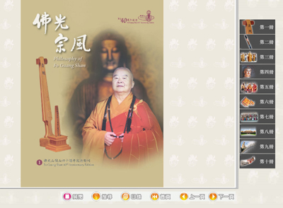 論佛光山史志的編纂──以四十週年紀念特刊為例釋永本 佛光山電子大藏經主任【摘要】佛光山以四大宗旨為主軸,所發展的弘法事業是多元的,故記載歷史的軌跡,也必須是多元的。對內的文獻有:《佛光通訊》、《山門日報》、各洲日訊、各單位每年的弘法報告等;對外說明弘化事蹟,即信徒的弘法報告,從《佛光山開山廿週年紀念特刊》、《佛光山開山30週年紀念特刊》、《佛光山開山四十週年紀念特刊》等。今以《佛光山開山四十週年特刊》為例,說明佛光山史志的編纂。 《佛光山開山四十週年紀念特刊》以圖文並重的方式編輯,以活潑生動的視覺圖像為主,貫穿時空,輔以短文記錄了人間佛教的弘法軌跡。此套書十冊,以分冊、分類系統式,呈現佛光山開山四十週年智慧的精髓。內容有:佛光宗風、新春賀函、僧信教育、文化藝術、慈善弘法、國際佛光會、國際交流、佛光道場、佛光山大事記、創意與第一。此套書,發行五千冊,提供道場、有緣人索取。除了文本外,佛光山的全球資訊網或電子大藏經的網站,可以閱讀、搜尋相關文獻。 除此之外,《雲水三千》、《百年佛緣》、每年致護法信徒的一封信,也敘述佛光山行事活動及弘法狀況。 關鍵詞:四十週年紀念特刊;佛光山;四十週年 一、前言 傳統寺志的編纂,可以全面、系統地瞭解本寺的歷史及其變遷的發展情況。現代寺廟的功能,亦由過去單純的道場和宗教活動場所,變成多元文教、藝術、觀光等功能的場域,要一一記載史實,純屬不易。佛光山提倡、實踐人間佛教,以建設人間淨土,對於開山、發展之歷史記載,更顯得重要了。 佛光山於2016年,已邁入五十周年了,寺廟與弘法事業的發展,也逐年增進。佛光山全球二百多間道場、近三百個佛光會分會;而佛光山有四大宗旨:「以文化弘揚佛法,以教育培養人才,以慈善福利社會,以共修淨化人心。」每一項的宗旨,都有許多不同的事業單位在落實;要全面記載史實,頗有困難。如以文化弘揚佛法:佛光山的文化事業有編藏處、佛光文化事業公司、佛光書局、佛教文物流通處、佛光緣美術館、香海文化事業公司、如是我聞文化公司、人間福報、人間衛視、普門學報等,透過編印藏經,出版各類圖書、發行報紙雜誌、提供書畫、錄影(音)帶、唱片、影(音)光碟等,肩負起為大眾傳播法音的責任。除此,2011年12月25日落成的佛陀紀念館,每年近百萬人次參觀,所影響的層面,可說無遠弗屆,也是值得記上一筆的。 故,本文只從佛光山歷史流傳中,所編纂的《佛光山開山四十週年紀念特刊》為例,略述佛光山的史志編輯。 二、編輯緣起 星雲大師1949年到臺灣,1964年建設高雄壽山寺,1965年創辦壽山佛學院;1967年於高雄開創佛光山,樹立四大宗旨,致力推動人間佛教。自此,為了記載建寺歷史及傳播佛法,第一份刊物《覺世旬刊》(1957年創刊,大師1962年接辦發行)就應運而生。隨著佛光山的創建、道場的開展,記載時事、活動、頒布法令規則、教育宗門思想、人事,令全山大眾能依法行事,促進弘法目標一致的《佛光通訊》,以半月刊的方式發行,一直至今寫下佛光山的歷史事蹟。 後來,全臺的寺廟、事業單位,不斷的擴展,為了記錄弘法的因緣與事蹟,全球每州增加「各州日訊」,及總本山的《山門日報》。並於每年8月徒眾講習會時,各道場、事業單位皆必須繳交當年度的弘法報告,並進行弘化得失之檢討。二十周年時,開始發行十年一次的紀念特刊。但也形成對內刊物之《佛光通訊》、《山門日報》、每年的弘法報告,對外的《佛光山開山廿週年紀念特刊》、《佛光山開山30週年紀念特刊》、《佛光山開山四十週年紀念特刊》。又因發展迅速,故2013年起,發行記載當年弘化事業的《我們的報告》(作為對信眾所捐獻淨財,弘法的呈現),依此記載佛光山弘法的歷史痕跡。 三、編輯目的 沒有歷史的記載,就不成文獻;沒有史料,就無法作為龜鑑。開山四十年來,在大師的指導下,佛光山的道場、弘法事業蒸蒸日上。為了將弘法經驗傳予後人,佛光山宗委會特別編印《佛光山開山四十週年紀念特刊》,記錄本山之宗風、組織、制度、教育、文化、慈善事業,留下重要且寶貴的歷史資料。因此,本書具有以下三項重要意涵:(一)是佛光七眾弟子見和同解、力行菩薩道的體驗。(二)是佛光山推動人間佛教,由臺灣邁向國際的軌跡。(三)是佛教與各宗教尊重包容、交流融合的展現。 四、寺志特色 為了留下佛光山創建的歷史文獻,歷年所編的二十周年、三十周年紀念特刊,皆偏重文字的敘述,將四大宗旨的內容匯成一冊。而四十周年紀念特刊,則以圖文並重的方式編輯,並以圖為主來解說內容。同時,圖片下的文字,採取中英對照的方式說明。其特色有三:(一)貫穿時空,以活潑生動的視覺圖像為主,輔以短文記錄了人間佛教的弘法軌跡。(二)歷時兩年半編纂彙整,以分冊、分類系統式,呈現佛光山開山四十周年智慧的精髓。(三)一套十冊,套書設計莊重雅致,菊8開本方便取閱,值得深研典藏。 五、內容主題規畫 《佛光山開山四十週年紀念特刊》共分為十冊,每冊的內容簡介如下: 第一冊佛光宗風:即是奠基於佛光山宗風思想,及弘揚人間佛教理念的歷史紀錄圖書。依篇章先後分為:宗門思想、佛光山的組織、佛光山的建設、佛光山的人事、佛光山的薪傳、佛光山的信眾以及傳戒單元介紹。 第二冊新春賀函:是星