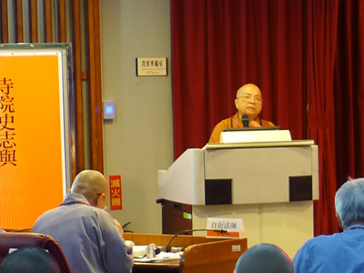 臺北市立大學人文藝術學院葉院長、各位教授、各位法師、各位居士,大家早。今天舉辦「寺院史志與大眾史學發展研討會」。首先,謝謝各位的蒞臨,也感謝臺北市立大學提供場地。這裡是愛國西路一號,就在總統府旁邊,不,在總督府旁邊,而今天是中華民國104年10月25日臺灣光復節。從地理位置和時間的坐標來看,都在標誌著「歷史」。