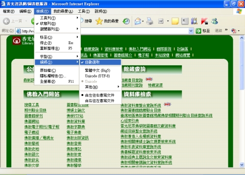 開啟IE瀏覽器,點選「檢視」→點選「編碼」→點選「自動選取」